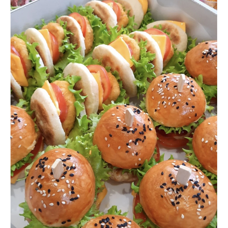 1. Бургер (булочка, сыр, котлета (куриная, говяжья), помидор, салат, соус (томатный, горчица) - 260р/шт