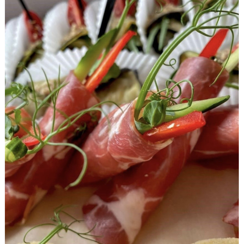 Шейка сыровяленая, сыр, чеснок, перец болгарский, огурец, прованские травы