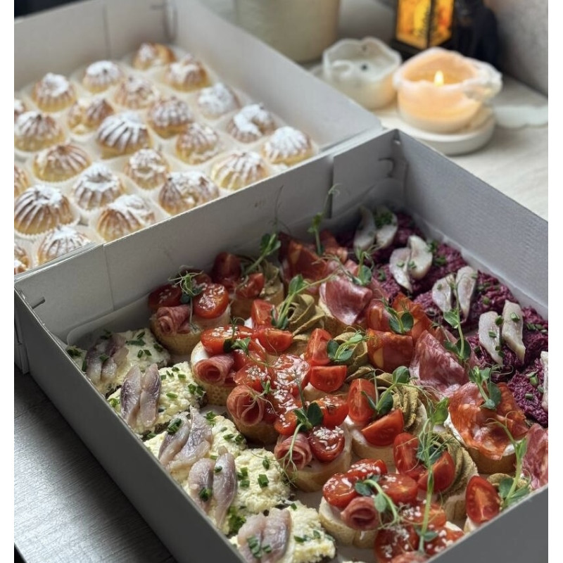 Бокс Кростини и брускетт на черном хлебе 30шт: